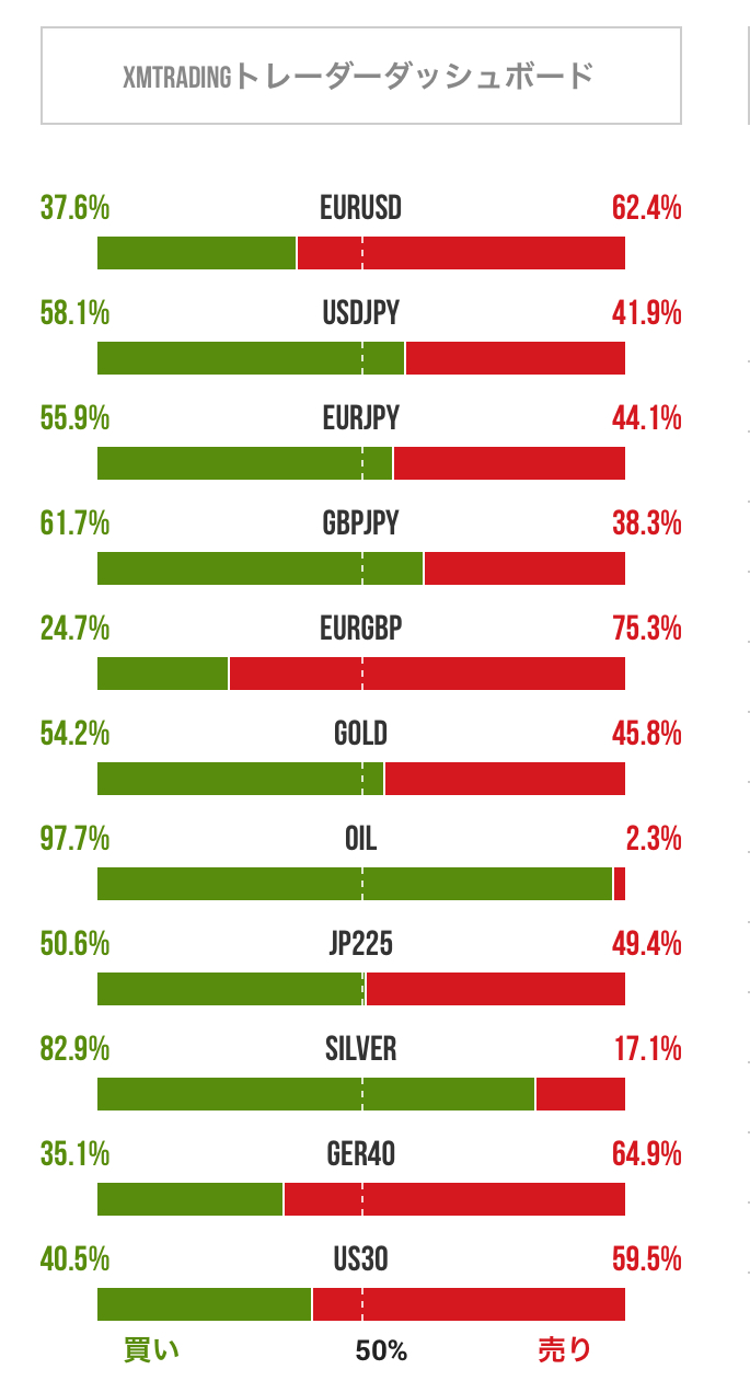 FX (Forex) トレーダーのポジション比率/ときたま更新 2026-02-18 FX、ゴールド、原油、日経225、シルバーなどについてトレーダーのポジション比率を掲載しています。トレードの参考にご利用ください。 2026年02月18日 12:03 のデータ 引用元:XMTradi...
