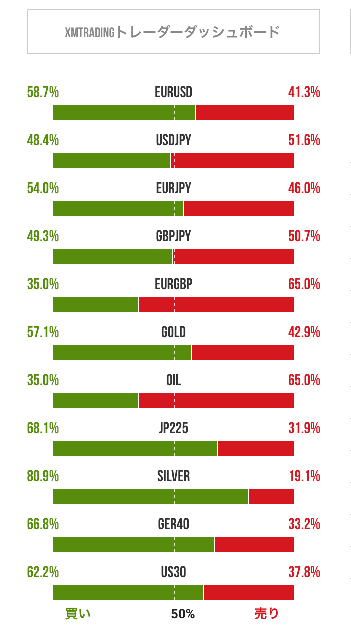 FX (Forex) トレーダーのポジション比率/ときたま更新 2026-02-20 FX、ゴールド、原油、日経225、シルバーなどについてトレーダーのポジション比率を掲載しています。トレードの参考にご利用ください。 2026年02月20日 20:07 のデータ 引用元:XMTradi...