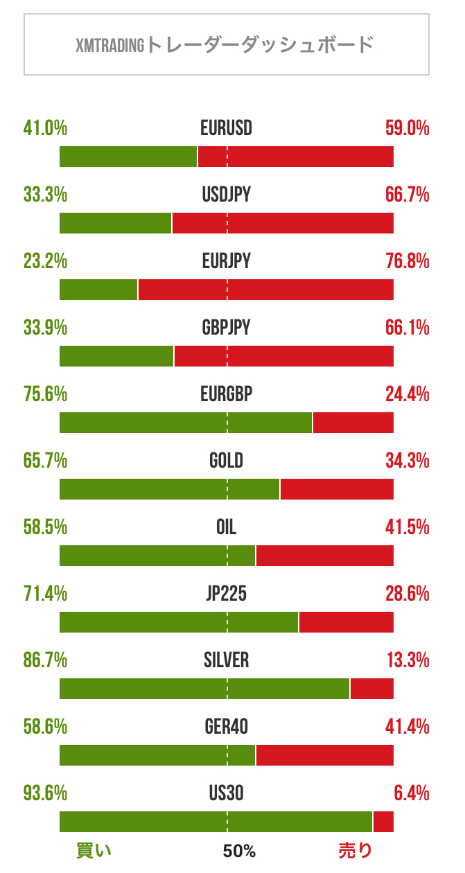 FX (Forex) トレーダーのポジション比率/ときたま更新 2026-03-18 FX、ゴールド、原油、日経225、シルバーなどについてトレーダーのポジション比率を掲載しています。トレードの参考にご利用ください。 2026年03月18日 12:03 のデータ 引用元:XMTradi...